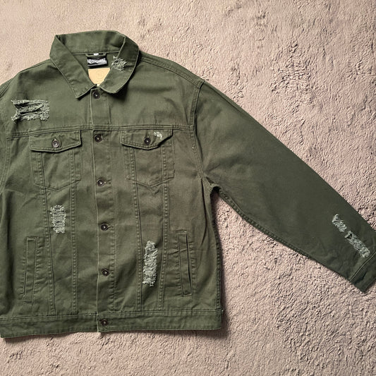 Snoop Dogg Olive Green Ripped Denim Jacket (XL)